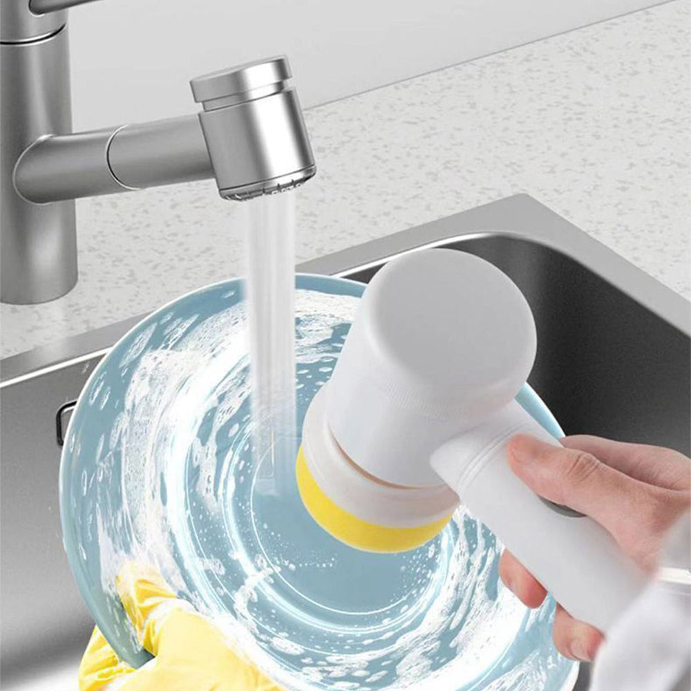 Електрическа четка за почистване, 5 глави, почистване на различни повърхности, водоустойчивост, бързо и ефикасно почистване, USB зареждане, бяла