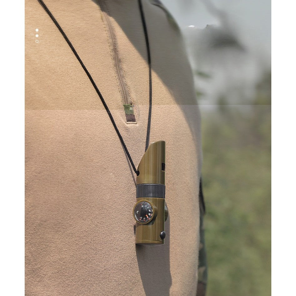 Echipamentul esențial pentru orice aventurier – un kit compact și versatil, conceput special pentru drumeții, camping și situații de urgență, care combină funcționalități multiple într-un suport ușor, cu șnur. Perfect pentru a fi purtat la gât sau agățat la rucsac, acest kit integrează fluier de semnalizare, busolă, lupă, termometru și compartiment pentru pastile – pentru liniște, siguranță și orientare în natură.