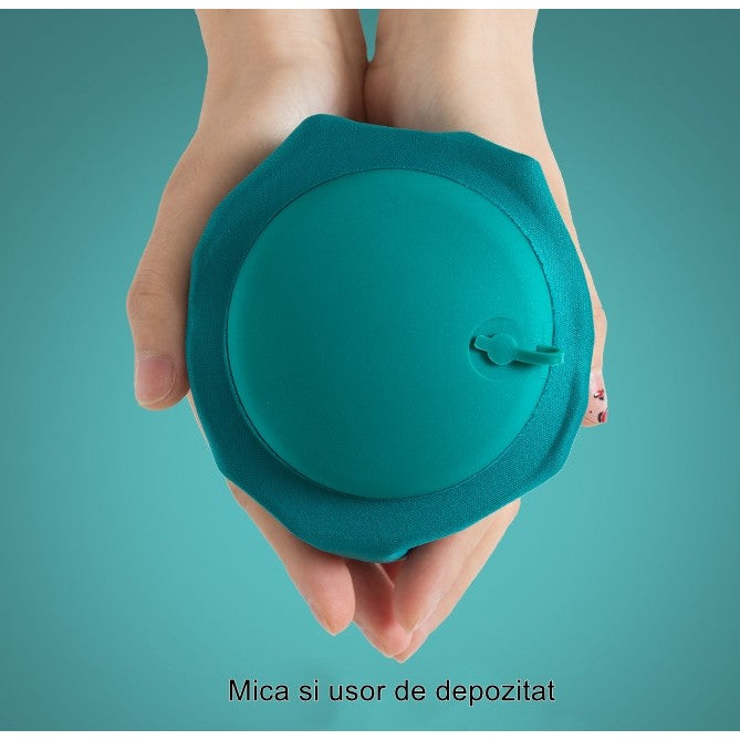 Indiferent dacă ești în avion, în mașină sau la birou, această pernă de gât gonflabilă în formă de U îți oferă suportul perfect pentru o relaxare completă oriunde te-ai afla. Cu un sistem inovator de umflare prin simplă apăsare, perna este gata de utilizare în câteva secunde, fără a fi nevoie să sufli în ea. Materialul catifelat și forma ergonomică asigură o susținere optimă a gâtului și capului, prevenind disconfortul în timpul călătoriilor sau pauzelor de odihnă. Fiind ușor de pliat și extrem de compactă, se strecoară cu ușurință în orice bagaj, rucsac sau geantă.