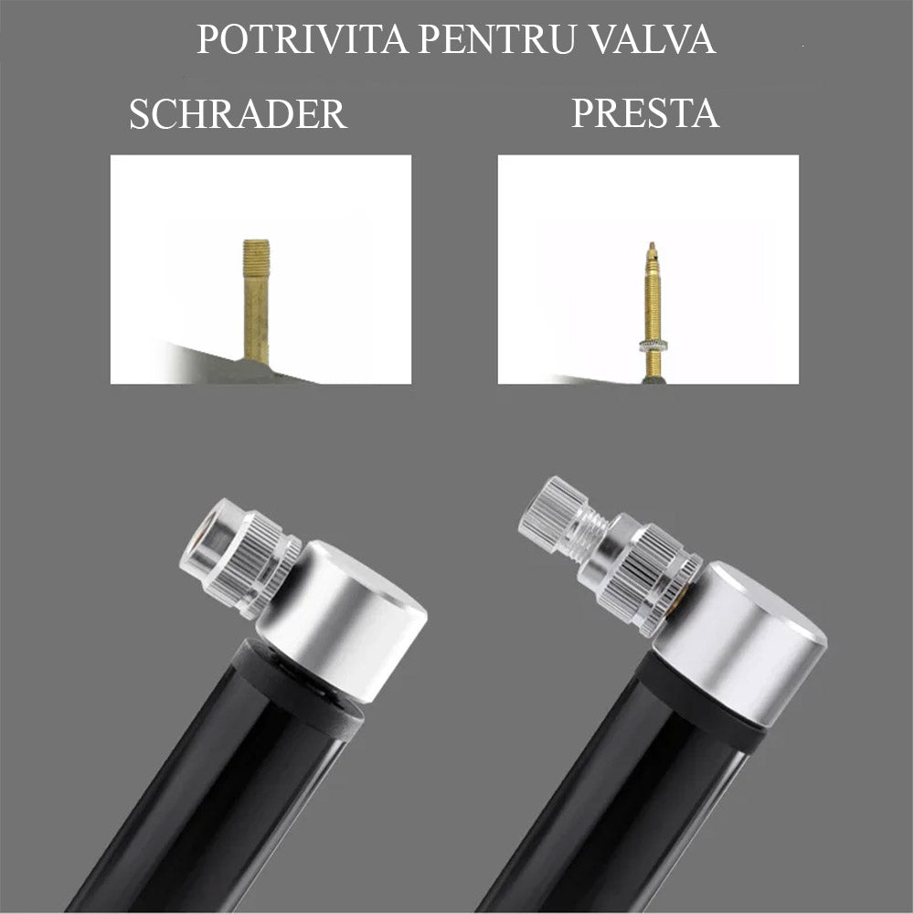 Ръчна помпа за велосипед, 130PSI, 9,8 см, черна