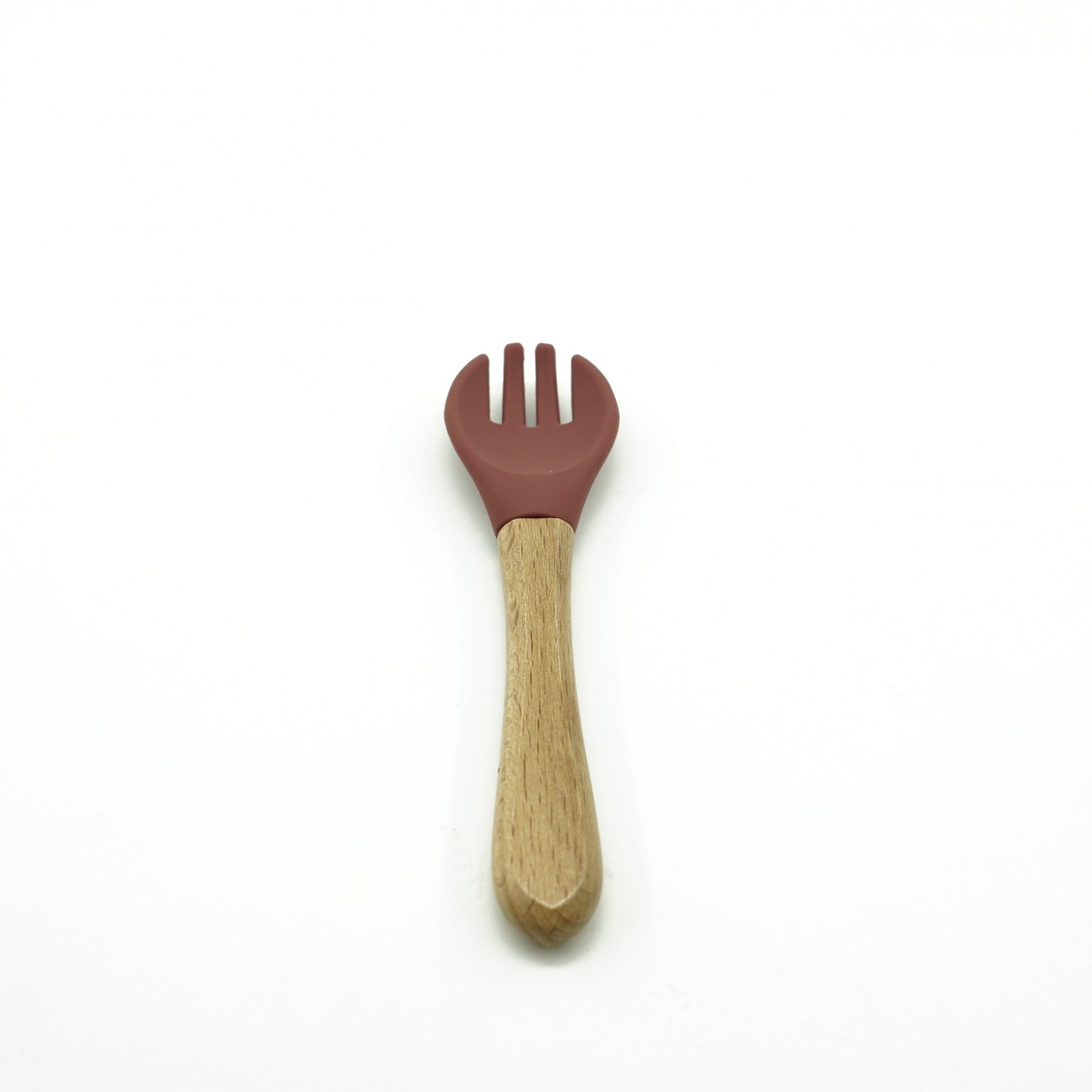 Tacâmuri din lemn + silicon, ușor de ținut de mâini mici și delicate cu gingiile