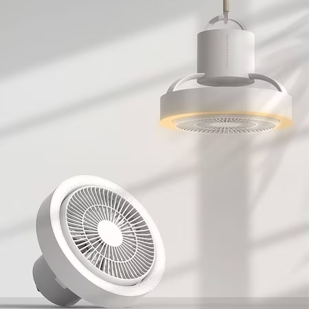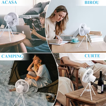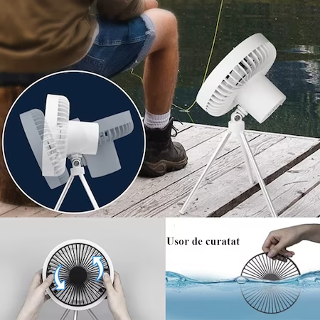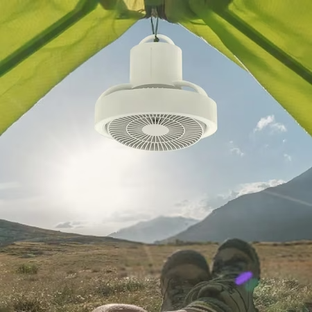 Многофункционален преносим вентилатор, идеален за пътуване и къмпинг. Може да се захранва от powerbank, което го прави отличен вариант за използване на открито.