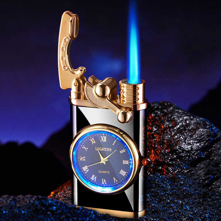 Brichetă pe Gaz Reîncărcabilă, cu Flacără Albă Antivânt și Ceas Reglabil Integrat