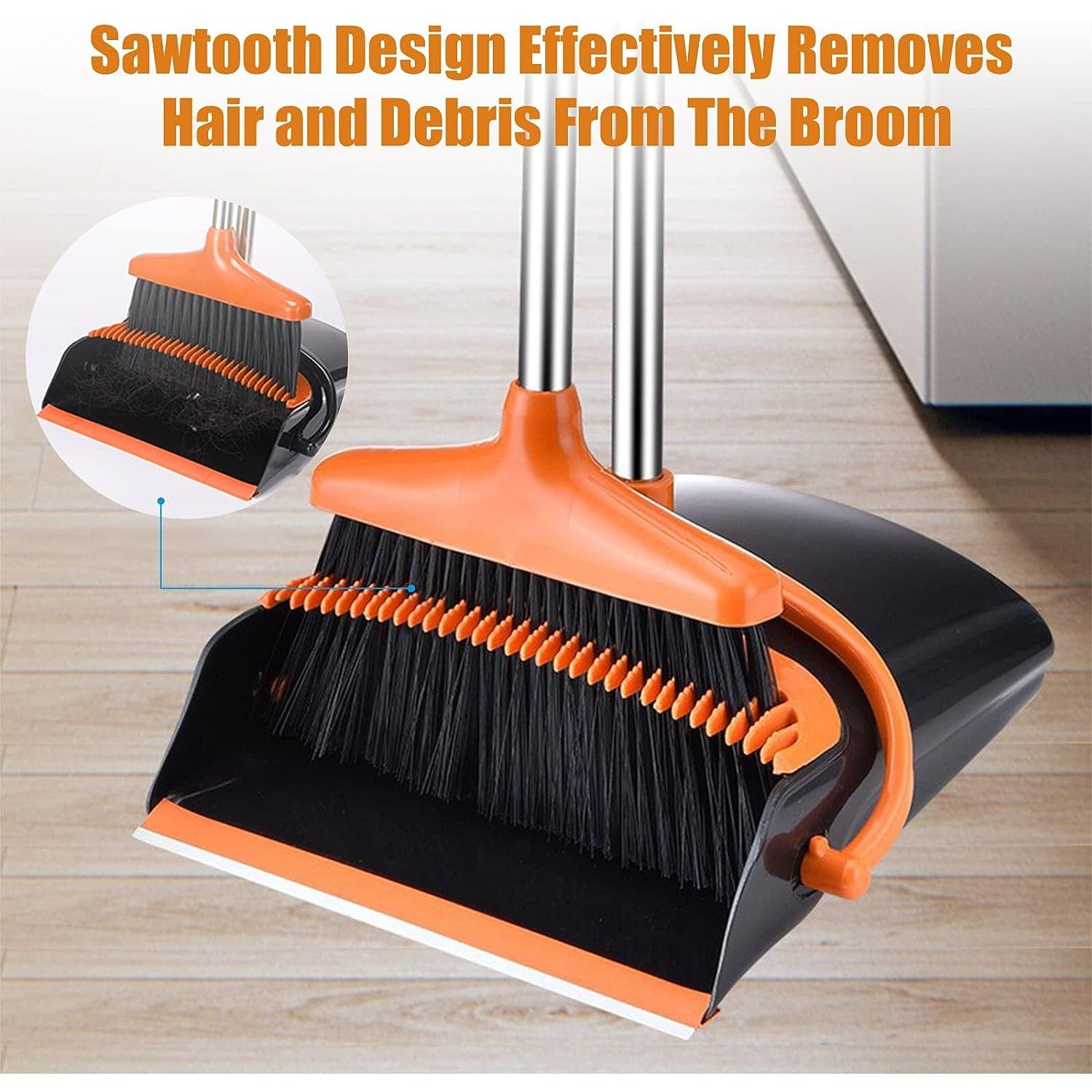 Simplifică curățenia zilnică cu acest set inteligent format din mătură și făraș cu coadă, conceput pentru utilizare comodă și depozitare verticală. Cu un design practic și vizibil în contrast portocaliu-negru, setul asigură eficiența în colectarea prafului și resturilor, fără a fi nevoie să te apleci, iar sistemul de depozitare pe verticală ajută la economisirea spațiului.