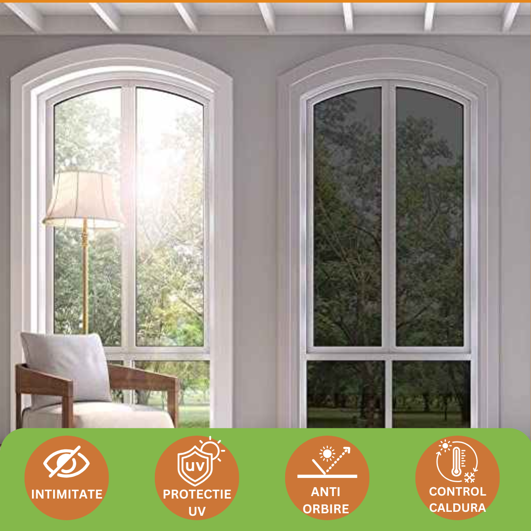 Intimitate sporită: Efectul de oglindă împiedică vizibilitatea din exterior pe timp de zi, fără a bloca lumina naturală.