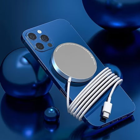 Aflati cum sa va incarcati wireless modelele iPhone 14 sau iPhone 13 cu un incarcator MagSafe. Incarcator special conceput pentru noile modele din seria iPhone 14 (iPhone 14/ 14 Pro si iPhone 14 Pro Max) lansate de Apple, potrivit si pentru incarcarea altor modele compatibile cu Magsafe si a oricaror modele de telefoane dotate wireless de orice marca. Incarcatorul magnetic este foarte usor si proiectat elegant si contine magneti puternici, in special pentru modelele furnizate cu acest sistem, pentru carcasele fara magneti MagSafe este posibila incarcarea wireless, dar atasamentele magnetice nu pot fi folosite
