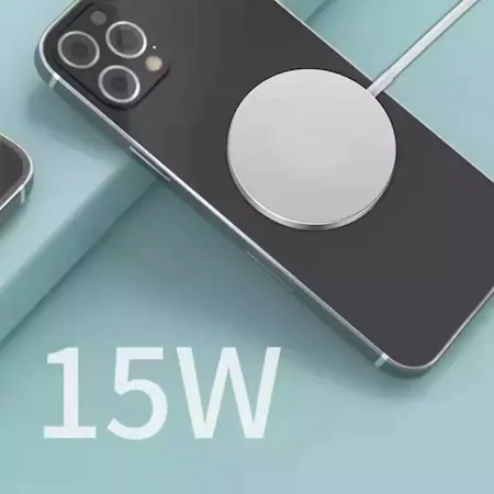 Incarcator Wireless MagSafe Fast-Charging 15W Universal, USB TIP C, compatibil cu iPhone 14/13/12/AirPods Pro/11/XR/XS/8, Samsung, Huawei, LG, Alb