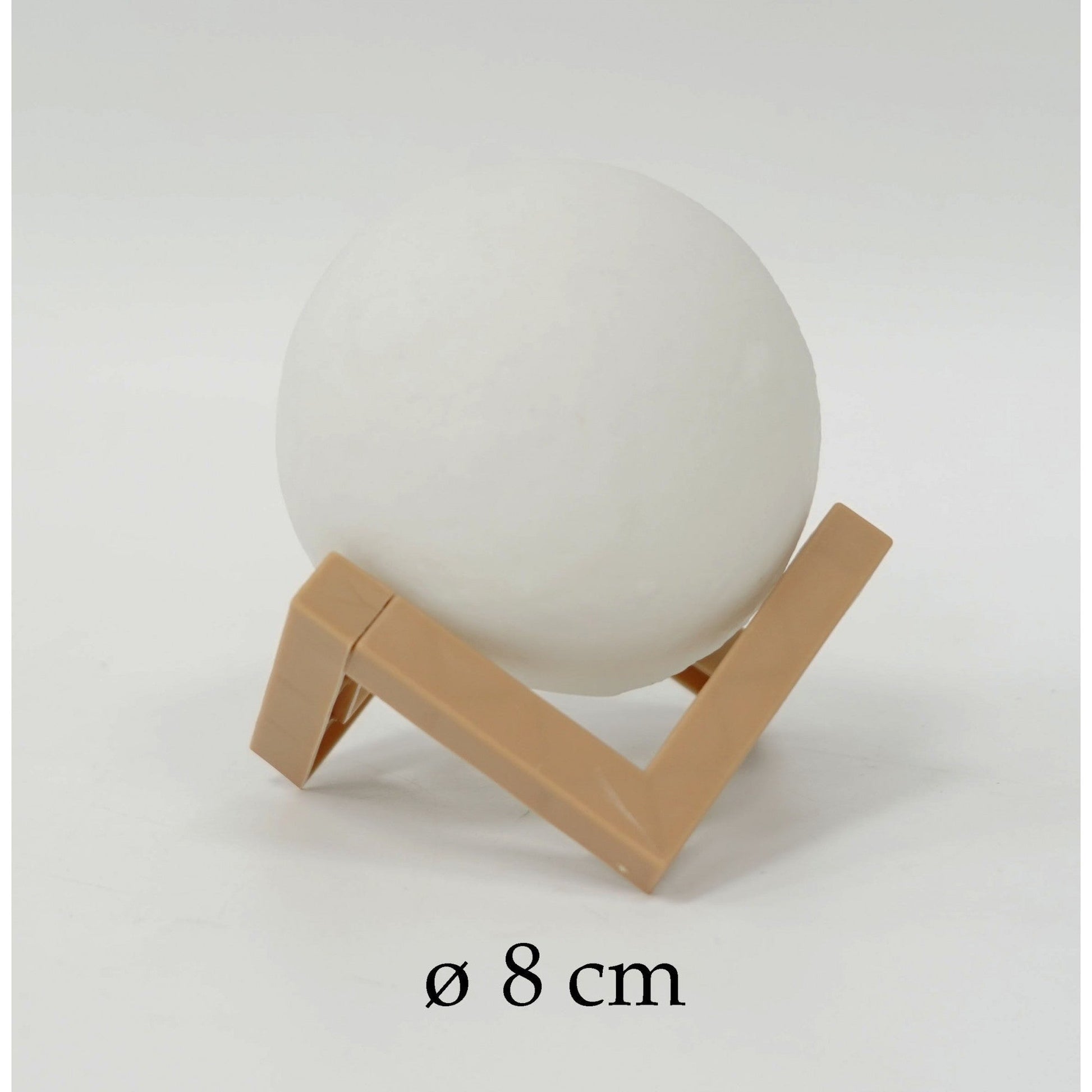 O lampă de veghe în formă de lună, reproducând craterele naturale ale satelitului nostru, transformă orice spațiu într-un ambient relaxant și primitor. Alimentată exclusiv pe baterii și fără acumulator, aceasta oferă o experiență simplă și versatilă, perfectă pentru nopți liniștite sau pentru a adăuga o notă de farmec în dormitor, birou sau living. Suportul din plastic inclus asigură stabilitate și integritate estetică.